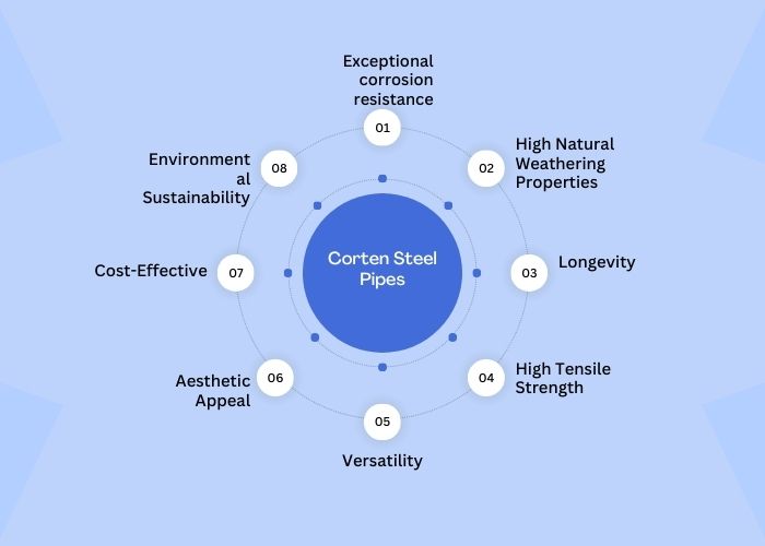 Corten steel pipes find applications across various industries due to their durability, weather resistance, and aesthetic appeal. Common industries that utilize Corten steel pipes include construction, architecture, landscaping, infrastructure development, marine, industrial manufacturing, and artistic sculpture. They are employed in structural supports, architectural features, outdoor furniture, drainage systems, water features, shipping containers, and more, owing to their versatility and ability to withstand harsh environmental conditions.
